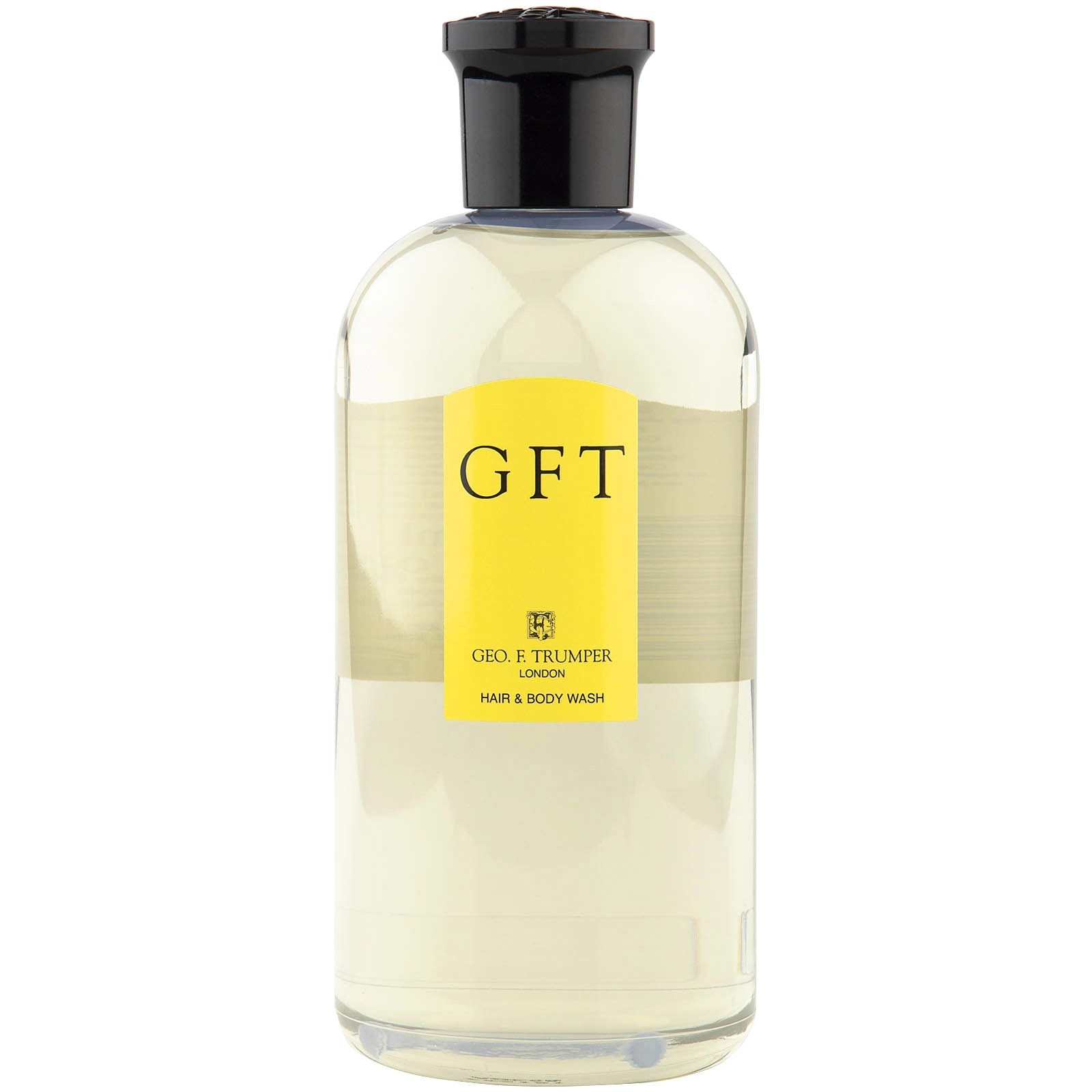 Koncentrovaný přípravek 2 v 1, sprchový gel a šampon GFT od renomovaného výrobce pánské kosmetiky Geo F. Trumper nese pánskou citrusově dřevitou vůni s jemnými podtóny pelyňku a dubového mechu.