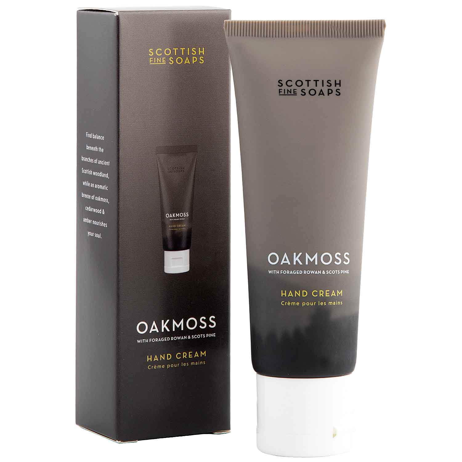 The Scottish Fine Soaps Oakmoss Hand Cream je bohatý hydratační krém na ruce, inspirovaný vůní starobylých skotských lesů. Obsahuje 10 % bambuckého másla, díky kterému hloubkově vyživuje, regeneruje a zjemňuje pokožku. Krém se rychle vstřebává a nezanechává mastný film - zanechává ruce hebké, hladké a příjemně provoněné.